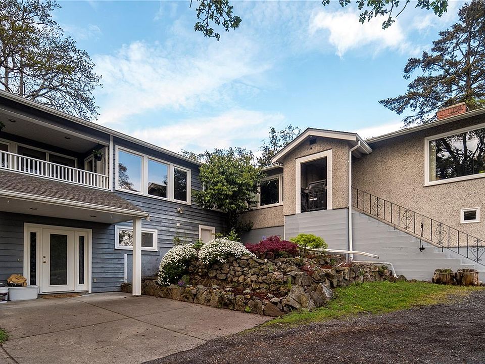 One of a kind: Side by side 2-family residence, nestled within the picturesque Blenkinsop Valley! This stunning 3/4 acre property offers the space and privacy of the country, with flexibility for different family configurations. The original 1950's home has sweeping views through oak canopy SW across the valley, and is composed of 2 bedrooms and 1 bathroom. Next to it, a contemporary 2003 addition hosts 3 bedrooms and 2 bathrooms across 2 levels. There is a generous main living area flooded with light, hardwood floors, granite counters, and the perfect primary bedroom retreat with spa-like 5pc ensuite. Comfortable and efficient homes come complete with 2 heat pumps, 3 HWTs, and upgraded electrical. The corner lot has a number of parking areas, outbuildings, and outdoor living areas perfect for family gatherings, gardeners, and hobbyists. This gem is just a short drive away from beautiful Cordova Bay Beach, fantastic schools, Mt. Douglas Park, and amenities in Broadmead & Royal Oak.