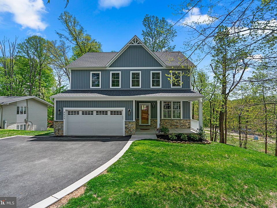 This beautiful 3,566 sqft craftsman style residence with El Dorado stone exterior accents is quietly situated in a cul-de-sac and settled on a landscaped .58 acre homesite backing to trees in Ellicott Woods. Embodied with luxury and style, this well-designed home is highlighted by a covered front porch, lustrous hardwoods, defined trim and moldings, and an elegant styling combined with casual comfort ideal for entertaining and day-to-day living. Upon arrival, the entry foyer greets you introducing a formal dining room accented by wood louvre shutters and a generous living room adorned with an ambient gas fireplace. Spark your inner chef in this gourmet eat-in kitchen showcasing handsome quartz counters, complementing subway style tile backsplash, a center island with breakfast bar and chic pendant lighting, recessed lighting, professional stainless steel appliances including a 6-burner range with a canopy exhaust, 42” Shaker cabinetry, and an adjacent glass slider accessing the enclosed low maintenance porch that opens to a grill deck. Owner's suite boasts modern lighting, a walk-in closet, a sitting area, and a garden bath displaying dual vanities, a step-in shower with bench seating, and a free standing soaking tub. Amazing spaces continue in the generous lower level where you find a rec room with LVT flooring and recessed lighting, a bedroom, a full bath, dedicated storage, and a walkout to a patio and fenced yard backing to trees. Adding to the aesthetics and interior environment is a 2-zone Lennox HVAC system and energy star certified Andersen® 200 windows. An idyllic setting central to shopping, dining, parks, commuter routes, and the Washington – Baltimore metro areas.  Welcome Home!