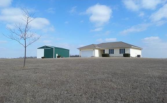 If rural living w/quick access to Lawrence, Topeka or Ottawa is what you want + a solidly built family home w/a full concrete walk out basement (some sheetrock up), a large 10x24 deck to look out to enjoy the view of your acreage, a fully stocked pond and a 30x50 well constructed metal building with concrete floors, then you must see this home. This home was constructed with quality materials in mind. Plenty of room for you to make this home "yours" with your own personal touches. Basement would be easy to finish!