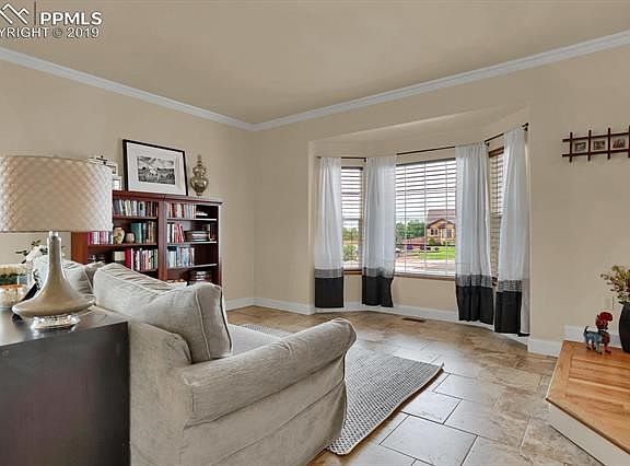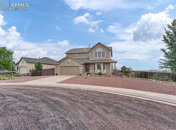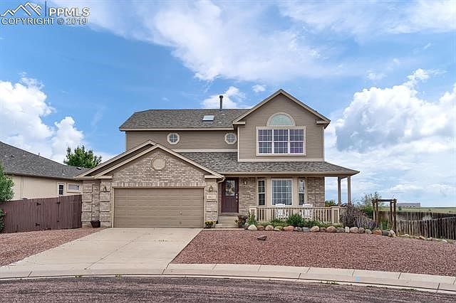 Beautiful 2-story home located on a quiet cul-de-sac with easy access to Powers, I-25 and Fort Carson. The main level features a bright and open layout with hardwood and tile floors. The LR/DR room combination features 2 bay windows with built-in bench in DR & crown molding in the LR. The floorplan flows into the spacious kitchen with center island, stainless steel appliances with double oven gas range, granite counters, pantry and eat-in area that steps out to the fenced backyard with stamped concrete patio.