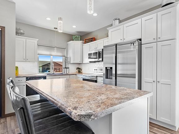 Welcome to your 4 bed, 3 bath, tri-level home with a 3 car garage. The main level has an open floor plan, tons of natural light, and dedicated laundry/mud room. The kitchen has soft closure drawers, tiled back-splash, LVT flooring, stainless steel microwave-stove-fridge, new dishwasher, under cabinet lighting, custom light fixtures, walkout to patio #1. The upper level has a living room overlooking the main level with iron railing, a master bedroom with walk-in closet, master bath with dual vanity and tiled shower (dual heads) and tiled floor, additional bedroom, and shared bathroom. The lower level has a great family room with recessed lighting, 2 bedrooms, shared bathroom, and utility/storage area. The yard is landscaped with privacy fence and 2nd patio. Updates include a water softener, Vivint Security System, EV charger with dedicated meter, insulated/drywalled garage and heater added. The sellers loved this home, and they know you will love it too.