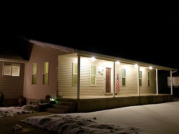 Enjoy the setting sun from your French doors or watch the sunrise from your 6'x 44' front porch. Either way, this beautifully upgraded home, in this peaceful town, has an open floor plan and many amenities you may be looking for! Real hardwood floors are throughout the main floor--tile in the two bathrooms and laundry room. On the main level you will find a formal living room, a great room, large master bedroom and master bathroom, second bedroom or office, and second bathroom. The laundry room is off the kitchen. Three basement bedrooms and the family room are carpeted--bathroom is tiled. Of the three storage rooms, one is ideal for cold storage. Amenities include: granite countertops and island in the large kitchen, new GE French-door refrigerator, recessed lighting, new ceiling fans, new water heater, GE water softener, central vacuum, in-home exhaust system (pulls in fresh air from the outside while pushing out hot air from the attic- great for summer evenings), central AC w/ gas heat, oversized garage, pull down ladder to the attic in garage for access and storage, extra insulation in the attic, large corner lot, fruit trees, and within walking distance to Enoch Elementary (a nationally recognized Blue Ribbon school).