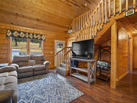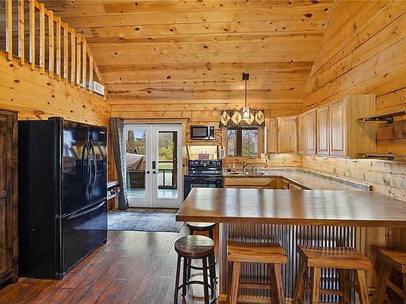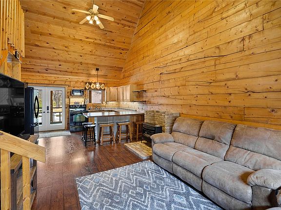 Don’t let the size of this waterfront log cabin fool you – there are so many things you will absolutely love about this property! This rustic getaway log cabin has great flow, from when you enter into the screened in porch, to the kitchen with hickory cabinets and center island eat at bar, great room with vaulted ceiling and large loft area. There are 2 bedrooms and 2 bathrooms on the main level. The gas woodstove is inviting to the great room, and provides great heat. But your love wont’ stop there, the cabin is on 2 lots, so there is a ton of outside space for games, a stamped concrete patio with large concrete fire pit, and your own boat dock/lift just a few steps away. This home has been well cared for, and recent improvements include new forced air furnace and central air with ducting, electric tankless water heater, doors to screened in porch to make it fully screened, light fixtures, added shower to existing tub and new master bath vanity, plus other improvements. Top that off with a floating dock (2020), and the cabin exterior was inspected, bad logs replaced, washed, re-chinked and entire cabinet resealed (2020). There is a detached 2 car garage, and plenty of parking for family or guests. This is a waterfront home at an offshore home price.