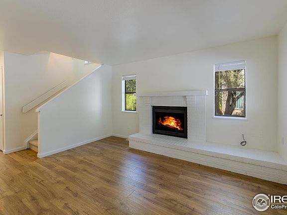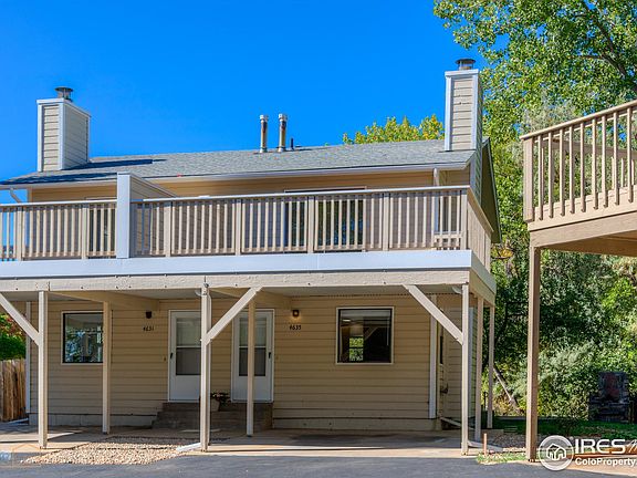 Perfect place to start your new home. Located in Gunbarrel (unincorporated Boulder County). This Townhome offers a main level living room with fireplace, 1/2 bath and kitchen. New LVT floors in all areas, kitchen is equipped with a stainless steel range refrigerator and dishwasher. The upper level has two bedrooms and a full bath. New carpet in bedrooms. The master bedroom has direct access it a recently rebuilt, by permit, 378 sq.ft. Trex deck over carport, with mountain views during winter months. The 2nd bedroom also has foothills views. Recent improvements include new carpet & LVT flooring, dishwasher, light fixtures, interior paint and blinds on windows. The exterior was painted 2023. The basement is unfinished, with washer dryer hookups and potential for additional living space. Lot abuts Boulder County Open Space and is near trails that lead to beautiful Twin Lakes. Easy access to Diagonal Highway, transportation, schools, King Soopers City Market and other services.