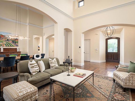 Located in the prestigious and very desirable guard-gated community of Rancho Pacifica on a private and quiet cul de sac on .66 of an acre of beautiful and lush grounds with Southern exposure and canyon views. Possessing the enviable architecture and style of a two-story Mediterranean-inspired estate, recently updated, with approximately 7,490 sq feet of living space. The easy flowing floor plan includes a welcoming foyer, formal living room with fireplace and adjacent dining room that lead out to the outdoor great room with fireplace, heater and to the sun-splashed pool and spa. The well-appointed chef's kitchen with large center island flanked in stone, has all professional appliances, an informal dining bar that opens to the oversized family room with fireplace, beamed ceilings and an area for informal dining. The sumptuous primary retreat is located at one wing of the residence and encompasses a large bedroom suite with fireplace overlooking the pool, dual custom appointed oversized dressing rooms, spa-like bath with tub, oversized shower, dual vanities and built in storage. The office/library/music room, adjacent to the primary suite, is flanked in wood with designer details. There are an additional two suites of bedrooms, all well-appointed on the first level. The second level has 3 large suites of bedrooms, one with a private balcony. The backyard is an entertainer’s dream where one can enjoy the saltwater pool & spa, outdoor great room with fireplace which is perfect for dining and relaxing and multiple lounging and sitting areas. Other design elements: owned solar, three-car garage with storage, raised gardens, fruit trees, and fully fenced rear yard. A very private a peaceful setting that is also close to all freeways, shopping, new hip restaurants, golf and country clubs, and some of the best beaches in Southern California.