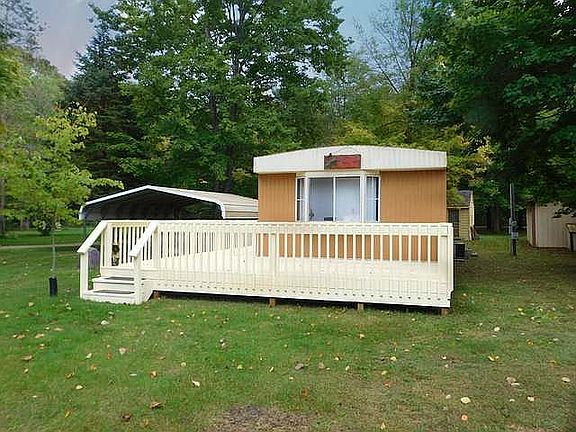 What a view! Enjoy the serenity of up north living at this riverfront retreat. The pride of ownership is very evident from the neat and clean exterior to the meticulously cared for interior. The eat in kitchen offers plenty of cupboard and counter space and a great view of the yard and river. The living room is just the right size for relaxing with the family. A laundry area is found in the hallway. Large master bedroom located nearby the full bath. The 2nd bedroom has a full closet and would be great for guests or the kids. The entire home is tastefully decorated in a woodsy up north look and will be sold with all the appliances and mostly furnished. Step out to the large deck and soak up the sun, grill or just enjoy the view. Firepit for bonfires after a day spent canoeing, kayaking or fishing on the scenic Tittabawassee River. Very close to state land! Large carport for parking under or storage and a large shed complete the package. Well & septic are 8-9 years old.