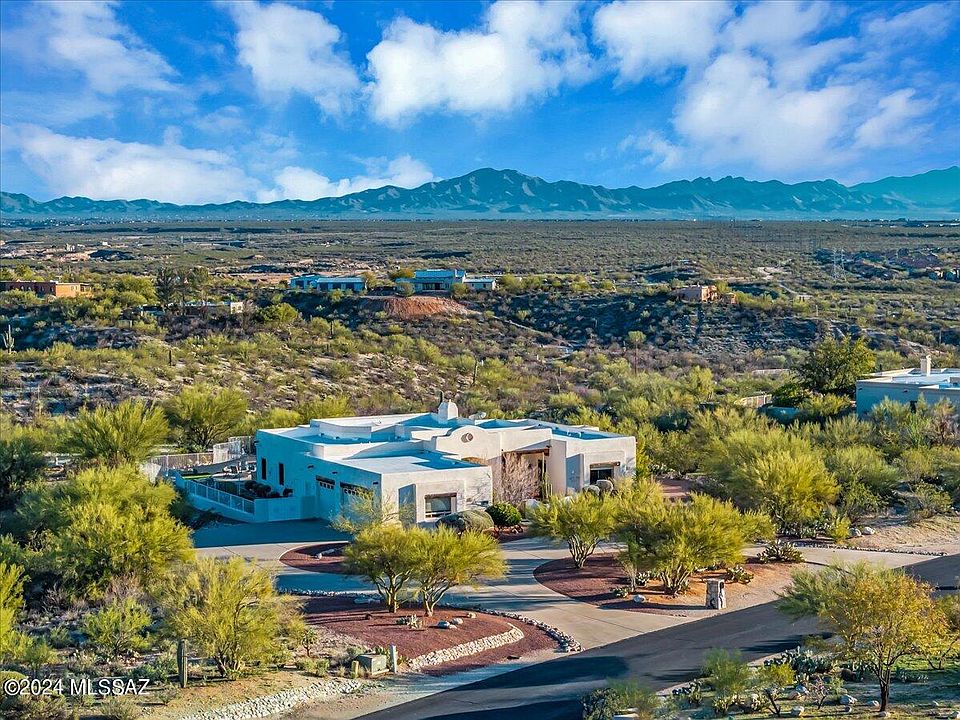 Welcome to this Tucson gem, where luxury meets panoramic mountain views situated to take full advantage of sunrises and sunsets. This home with 11 foot ceilings throughout stands apart in a gated community full of custom homes, sitting on 3.32 acres, zoned for horses, equipped with horse corral and stalls with easy access to Pantano Wash. An updated kitchen with granite and custom real wood cabinets by Swiss & Martin, updated recessed lighting, continues into the open concept great room with a cozy gas fireplace. The features of this house continue with the fourth bedroom converted to a large home office with 2 wall to wall desks and cabinets perfect for telework. The master bath has been completely remodeled into a haven of relaxation, complete with an extra large walk-in shower, therapeutic soaker spa, dual vanities with granite, and his and her walk-in closets offering ample storage. Freshly updated bathroom flows into the oversized master bedroom complete with sliding glass doors giving you sunset mountain views and access to the outdoor living space. This backyard oasis is ideal for relaxing evenings or entertaining with your propane fire pit, PebbleTec Pool, and Jacuzzi. Even your pets will love it with a fully fenced in dog run. Don't miss the chance to own this breathtaking Tucson gem, where every detail is curated for your enjoyment. Welcome home!
