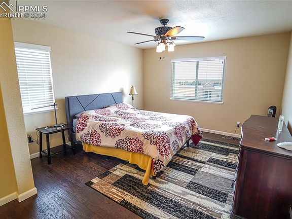 Located in the Falcon Ridge neighborhood is this three-bedroom, three-bathroom, two-story home. The main level features an open concept flooded with hardwood floors and a spacious kitchen, dining room, living room, and laundry hookups. The second story has a large loft, which is perfect for a home office or reading space. The large primary suite comes with a 5-piece bathroom. The two secondary bedrooms are spacious. The community has walking trails and is pet-friendly. In close proximity to Barnes & Marksheffel, you have a direct route to shopping. Come make this your home today!