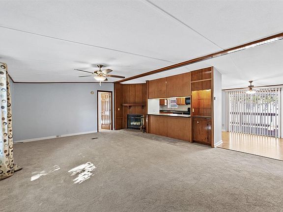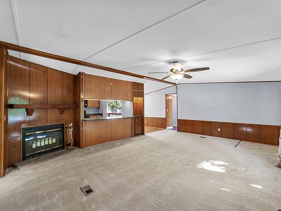 Spacious, freshly updated 3 bedroom 2 full bath home is now available. This home offers 1352 square feet of open floor living. The living room has large windows and brand new carpet. Spacious kitchen with separate eating area makes food prep a breeze with ample countertop space, cabinet storage and deep pantry. The master bedroom is generously sized with a walk in closet, brand new flooring (carpet and lux vinyl), and full master bath. The split bedroom layout is great! 2 additional nicely sized bedrooms and updated full bath are located on the opposite side of the home. Main floor laundry is so convenient! The deck is covered and overlooks the level yard that backs to privacy. Large shed is perfect for additional storage. Newer furnace & newer AC interior parts. Seller is offering a 1 year home warranty. Refrigerator, Washer, Dryer all stay with the home. This is a manufactured home and sold in its AS IS condition. See seller's disclosure for more information.