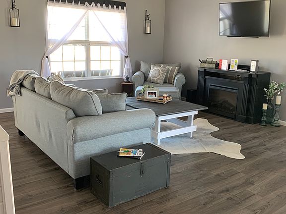 Enjoy all the Pleasures of Small Town Living in South Woods! Beautiful Newer Home on the Edge of Smithton features 3 Bedrooms and 2 Baths with Open Living Area. Kitchen features White Cabinetry and Crown Molding with Walkout to Patio. All Kitchen Appliances Stay! Bathrooms Feature Back Saver Vanities. Laundry Area on Main Floor. Washer and dryer negotiable. There's Room to Grow in the Full Framed Basement that is Plumbed for Bath and has Egress for 4th Bedroom and Plenty of Room for Recreation Area and Storage. Shower base, vanity, and toilet negotiable for basement bathroom. Faux Fireplace Stays. Two Car Attached Garage with. New Flooring throughout .