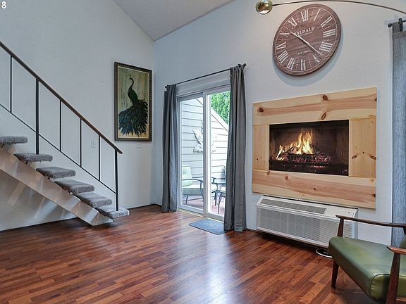 Updated condo in close-in West Portland Park neighborhood. Renovations completed in 2017 including new roof, siding, patio, skylights, high efficiency windows and more! Open floor plan on main level. Kitchen w/eating bar. Living room includes wood burning fireplace & access to newer deck from glass sliding doors. Upper level loft/master suite w/walk-in closet, en-suite bath and new carpet. Huge storage room in unit.Community pool. [Home Energy Score = 9. HES Report at https://rpt.greenbuildingregistry.com/hes/OR10160847-20180822]