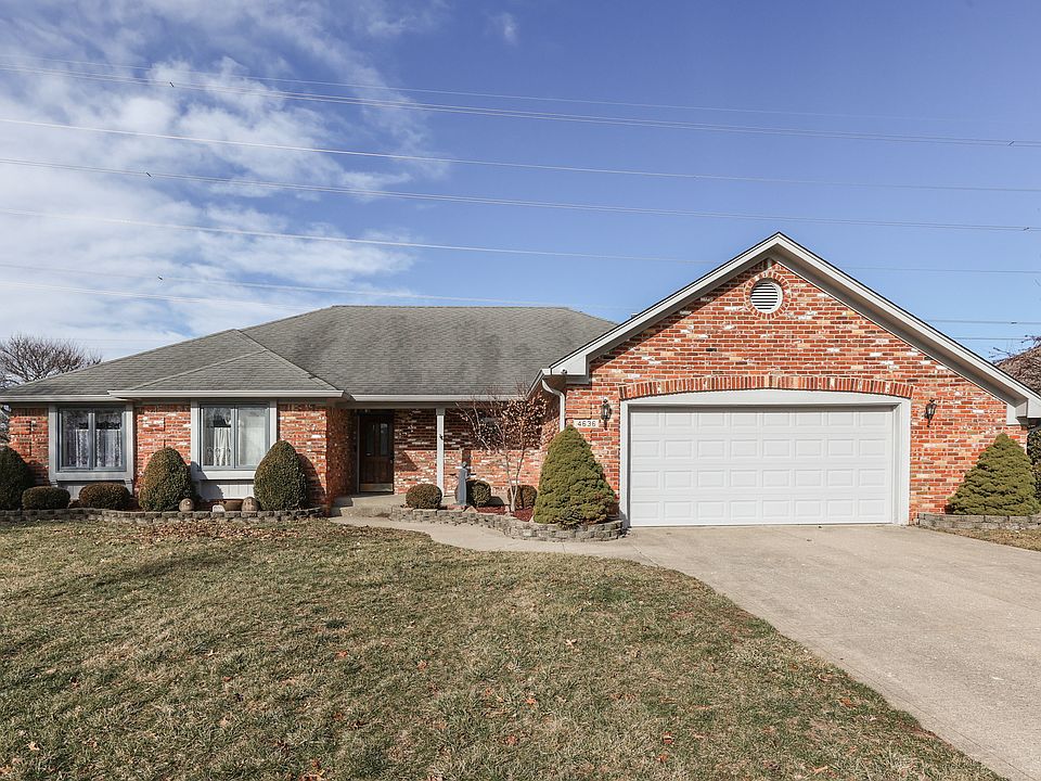 *HUNTERS POINTE* 1869 sq.ft. 3 BEDROOM + 2.5 BATH Brick Ranch in Desirable Neighborhood! Features: NEW Gas H20 Heater '22; Engineered-Hardwood Floors; Large GREAT ROOM w/Gas Log Fireplace (w/Blower) + Cathedral Ceilings; 18x09 SUNROOM to Enjoy; LAUNDRY ROOM; Eat-In KITCHEN: Recently Painted Cabinets + Walk-In Pantry + BREAKFAST ROOM; MASTER SUITE: Full Shower Stall & Separate Whirpool Tub + His & Her Closets; 2+ Car Finished Garage w/Workbench; Fenced Backyard w/Large Wood Deck; No Neighbors behind!; Large, Covered Front Porch; Newer Gas Furnace '18; Great Location on Quiet Street!