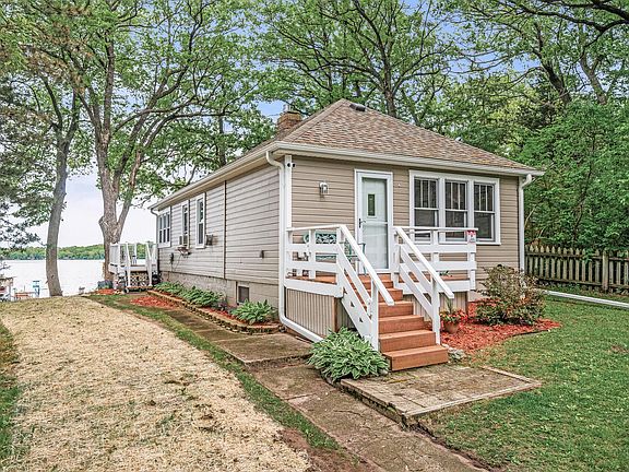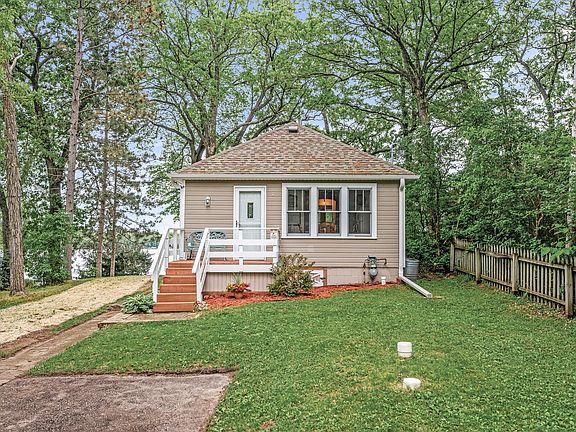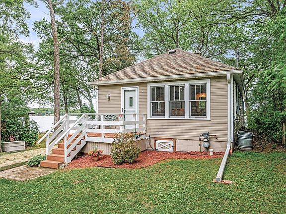 This adorable lakefront getaway offers the perfect blend of charm and convenience, just 40 feet from the water’s edge with a gentle slope to the shoreline. Featuring 63 feet of cedar dock, this cozy cottage is ideal for summer fun or peaceful weekend retreats. Updates include: roof and gutters (2018), North and East-facing windows (2019), new well (2017), and freshly installed rip rap and seed (May 2025). The home currently has holding tanks, with the potential for a septic system upgrade. A one-car garage/shed offers extra storage. All furnishings can stay—just bring your swimsuit! Located within walking distance to the local general store and popular Palmer Days festivities. New gas fireplace insert installed in Summer 2023 and Leaf gutter covers added in 2023. A quick close is possible—spend this summer at the lake!