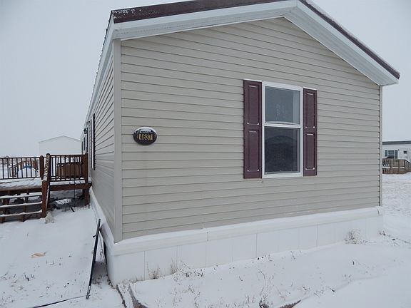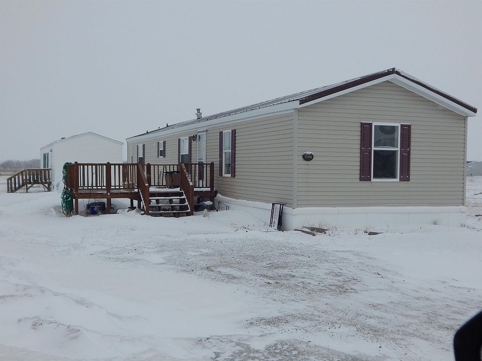 3 bedroom, 2 bath manufactured home east of Minot. Newer metal roof, all new windows, newer carpet and some new flooring. Large master bedroom with garden tub, shower and large walk in closet. Open kitchen with gas range, lots of cabinets and countertops. Open dining room and living room. Large 10 x 16 wood deck on the front of the house, perfect for entertaining, along with a small deck on the back of the home. This is located in one of the least expensive courts with lot rent at $395/M, which includes water, sewer and garbage. Contact your favorite agent and check this out today!