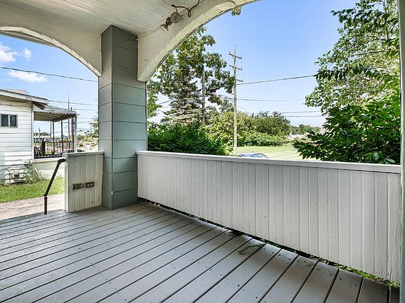 This home features: Fresh paint throughout; hardwood flooring; fully updated kitchen with new cabinets, quartz countertops, tile backsplash, and SS appliances. It also features the primary bedroom on the first floor; two fully updated bathrooms; a full basement; and a large detached garage for extra storage, with a washer and dryer included. It also includes a covered front porch, back patio, fenced backyard, large driveway, and more!