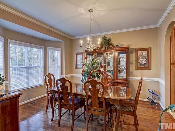 Immaculate & move in ready transitional home in convenient Garner location. Hardwoods throughout most of 1st floor. Spacious family rm features cathedral ceiling & gas log fp. Formal dining room w/ bay window. Bright & open eat-in kitchen offers solid surface tops, updated tile floors & newer s/s apps. 1st floor master suite includes trey ceiling, soaking tub w/ separate tile shower & walk in closet. Large bonus rm w/ closet & built-ins. Walk in storage. Fantastic, deep backyard w/ extensive landscaping.