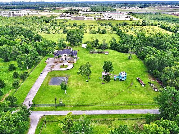 Magnificent gated nine acre estate just minutes from the Houston Medical Center and downtown area. This private estate offers the perfect setting for weekend entertaining to full-time living. Fantastic open concept floor plan with a chef quality kitchen that opens to breakfast and living rooms with multiple windows looking out onto the grounds of the property. The spacious master bedroom has sitting area and an exquisite bathroom with double head showers and a raised soaking tub. There are 3 bedrooms suites up, an extra room and game room. The very large game room doubles as a media room and has a balcony overlooking the grounds. Extra room down is a gym with a wet steam sauna. Outside you will find plenty of room for fun; there is an outdoor walk-in movie theater along with a deck, a hot tub and the back porch is covered. Bring your cows or horses, there are no deed restrictions. The three-car garage has a car lift and high ceilings. For more details please inquire