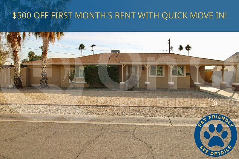 ** $500 OFF FIRST MONTH'S RENT WITH QUICK MOVE IN! ** 1,460 SQ FT! 3 bedroom, 2 bath home in Phoenix's Rancho Mio neighborhood. Desirable single-story floor plan. Charming kitchen with included appliances: Dishwasher, Dryer, Microwave, Oven, Refrigerator, and Washer. Spacious living areas, perfect for entertaining! Carpet and tile flooring in all the right places. This home offers 3 nicely sized bedrooms. Enjoy a backyard with a fenced yard, sparkling pool, a grassy area, and a covered patio. 1 car garage! Pool Service Included. Located in the desirable Rancho Mio community. Great Phoenix location with nearby schools, parks, dining, and entertainment. APPLICATION: $65 Application Fee Per Applicant 18 years or older (Nonrefundable). Please allow 24 to 72 business hours to process the Application once all required documents are submitted by all applicants 18 years or older. LEASE LENGTH: 12-month Minimum (Longer Lease Term may be negotiable) INITIAL MOVE-IN COSTS: Upon application approval, a nonrefundable Holding Retainer will be required to secure the property and will be applied towards the move-in costs. The Holding Retainer amount is determined by the type of Security Deposit option you choose. Applicants can choose between a traditional Security Deposit which may be 1.25 times the monthly rent but not greater than 1.5 times the monthly rent (75% refundable) or a Security Deposit Alternative program (only available on long-term leases of 12 months or more). A $250 one-time lease preparation fee as well as the first month's rent is due prior to move-in. Pet Policy: Dogs and Cats Allowed with the following exceptions: Pet friendly, pets will be considered upon approval. If the Applicant has a Pet, $150 Non-Refundable Pet Fee per pet. RECURRING MONTHLY COSTS: There is a 3.3% Administration Fee. If the Applicant has a Pet, a $35 Pet Rent Per Pet (Does Not Apply to Assistive Animals). All On Q Property Management Residents are enrolled in the Resident Benefits Package for $39 or $49 with pets, which includes liability insurance, credit building to help boost the resident's credit score with timely rent payments, move-in concierge service making utility connection and home service setup a breeze during your move-in, Renter to Buyer program, and much more! *Other terms and conditions may apply. All information including advertised rent and other charges are deemed reliable but not guaranteed and is subject to change.
