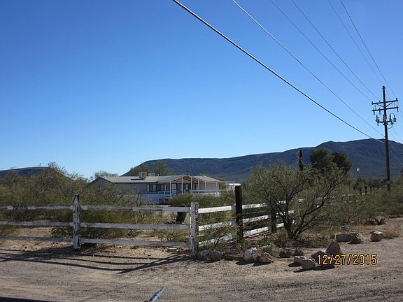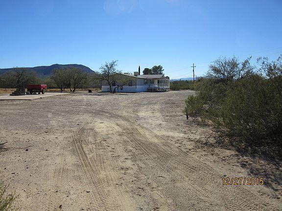 By appointment only. Please call or text. 520-405-9906 No owner financing. 1990 Remodeled Cavco manufactured home with 3 bedrooms and 2 full bathrooms on 1+ acre. See attached map, this acre is being split off a larger parcel, split currently in processing with County. Split bedroom design, country kitchen design with open counter into living room, two full living rooms, built-in bookcase, laundry cove, linen closet next to spare bathroom. Dishwasher, garbage disposal, refrigerator, oven, washer/dryer, food pantry. New wood flooring in kitchen, new carpet in bedrooms and living rooms, new tile floors in bathrooms. New vanity, sinks, toilets. Garden tub and walk-in shower in master bath. Textured walls in living rooms and partial bedrooms. New kitchen cabinets/counter/doors. Full wall closets with new mirror sliding doors. New back door and back door steps. Fairly new heater, evaporative coolers, house is all electric (no gas). House and porch newly painted, new skirting. Fenced in back yard. Fenced/gated property. Septic installed, City Water, Tucson Electric Power, phone line to house. This is not in a flood zone. Horses allowed.