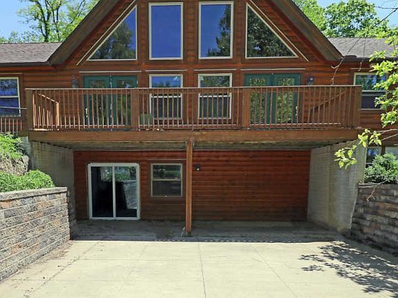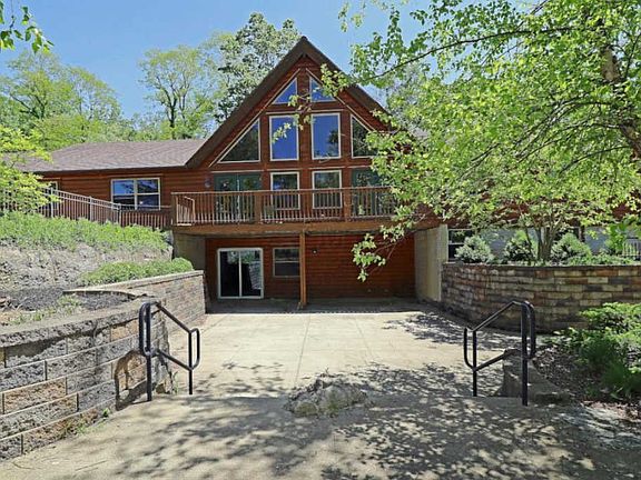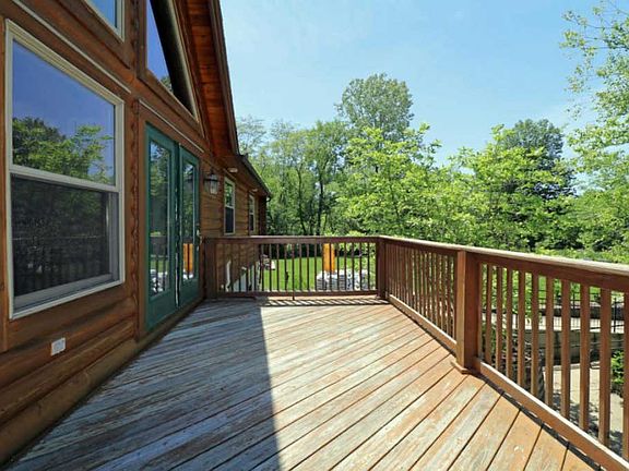 Spectacular log home set on 1.37 acres. 2,900 SF Ranch with full, ready to finish Lower Level. The property features a 1,300 SF front Patio area with access to the lower level. There are front & back decks, plus a covered back Patio. The words Great Room truly describe the home's main living area, with a soaring cathedral ceiling, free standing gas fireplace & wall of windows filling the space with natural light. There is also a large Dining Rm, open design Kitchen with granite counters, stainless steel appliances, 2 pantries, Half Bath/Laundry & more. 2 main level BRs & Full Baths. Owner's Ste features 2 walk-in closets & luxury Bath with jetted tub & shower. All 3 Baths have double sinks. 2,900 SF walk-out LL has rough-in for Bath, gas fireplace, egress windows, 2 HVAC systems.