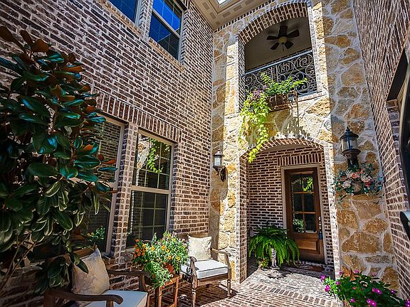 Sophisticated and Elegant Villa Style Home with a Private Tuscan Courtyard and Gated Entrance. Darling Built, Smart Home in sought after Mustang Park. 3 car split garage, Beautiful floor plan has Owners Suite and a secondary bedroom with full bath on main floor. Large Eat in Kitchen, SS appliances, gas stove, double oven & granite counter tops. Hand scraped hardwood flooring throughout main areas. Upstairs has Media Room + Game room + 2 Bedrooms with private full baths. Landscaped Back and Side Yard. Many Upgrades throughout. Walking Trails and Beautiful amenities. Near West Plano-Carrollton line - close to Arbor Hills, Willow Bend Mall, Prestonwood Church, Prince of Peace, Legacy West and Toyota Hqtrs.