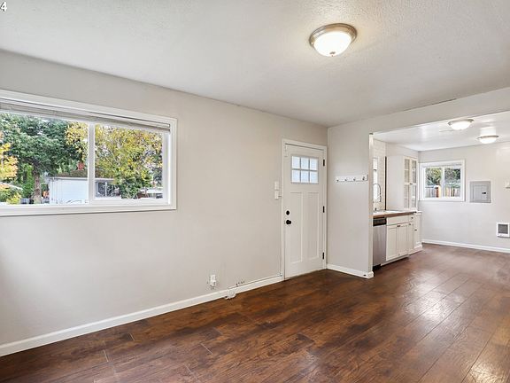 Discover the charm of this delightful Parkrose bungalow, beautifully set on a spacious, sun-soaked lot! As you step inside, you'll be greeted by an inviting open floor plan that bathes the space in natural light. The generous kitchen features charming nooks and modern stainless steel appliances, seamlessly connecting to a cozy living area. Gorgeous flooring flows throughout, enhancing the home’s warmth and character. Retreat to the cozy bedrooms, each offering serene views of your private, fully fenced yard—an entertainer’s dream! Perfect for summer gatherings or peaceful evenings under the stars, this outdoor oasis invites you to enjoy the beauty of nature right at your doorstep. You'll appreciate the updates that bring peace of mind, including the roof, siding, windows, exterior doors, gas, water, electric, water heater and plumbing systems. Foundation repaired and new concrete slab for shed poured in 2020 by Terra Firma. Located just minutes from the freeway and PDX, convenience is at your fingertips without sacrificing tranquility. Don’t miss your chance to make this charming bungalow your own—schedule a showing today and experience the perfect blend of comfort and style! [Home Energy Score = 3. HES Report at https://rpt.greenbuildingregistry.com/hes/OR10076626]