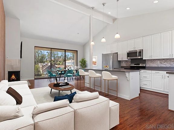 YES, IT'S ON THE WATER! Carlsbad at its finest. Imagine living less than a mile from the Carlsbad beaches, in a waterfront condo! Welcome home to Bristol Anchorage with breathtaking lagoon and sunset views from this rarely available west-facing condominium. Relax on the balcony, enjoying the water festivities below or cozy up next to the inviting fireplace in the open great room. Vaulted ceilings create a spacious main living area, and the large kitchen island offers an inviting space for family gatherings or entertaining friends. The upgraded kitchen boasts white cabinetry, quartz counter tops, stainless-steel appliances and an eat-in counter. In the primary suite, a beautifully upgraded bathroom including a custom tiled shower with pebble flooring and a sizable walk-in closet awaits you. A secondary bedroom offers an abundance of natural light with a large skylight overhead. Enjoy private access to the common amenities including pool, spa, gas grill, firepit and the private boat dock. Boat slips are available on a first-come, first-serve basis but there is also storage for water toys. Float your way to the Aqua Hedionda (Carlsbad) Lagoon! A gated garage provides two underground parking spaces and additional storage areas. Located close to the lagoon, dog park, Carlsbad Village and beach with easy access to freeways and shopping. Don’t miss this opportunity to live your dream life in Sunny Southern California!