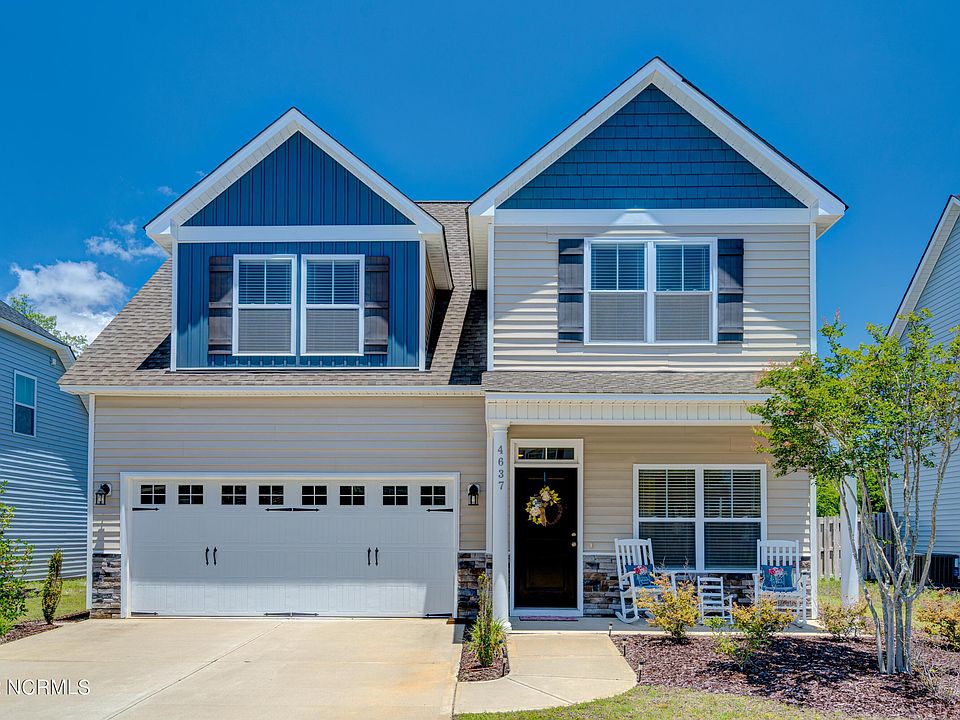 Presenting this Move in Ready 4 bedroom 2 1/2 bath home located close to area beaches, restaurants, shopping, entertainment, UNCW, and easy access to I-40 for your traveling needs. This home is only 3 years old, with plenty of features to appreciate. The exterior features a front porch, with columns and stone accents. The interior features LVP flooring on the lower level with an open floor plan. An office is located at the front of the home offering plenty of light and French doors. The kitchen has all stainless-steel appliances, an island, pendant lights, granite countertops, and a walk-in pantry. The large great room is open to the kitchen with a dining nook. Access your backyard through the sliding glass door and enjoy your patio and large fenced in backyard. Upstairs you will find the primary suite with vaulted ceilings, a large walk-in closet, and an adjoining bath. The second level has three additional bedrooms, laundry area, and an abundance of storage
