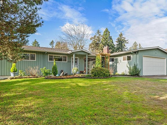 Hard to find single level home on huge lot in desirable Bridlemile area of SW Portland! This lovely 1,626SF home sits on a 15,000SF level west facing lot. With hardwood floors across most of the main floor, the living and dining rooms have vaulted ceilings and a roman brick floor to ceiling fireplace. The spacious open kitchen has a huge island and stainless appliances including a dual fuel range, custom cabinets and more! Just off the dining room french doors open up to the vaulted family room, and there is a dedicated office at the back of the family room too. The primary bedroom has hardwood floors and a full bathroom, and both the 2nd and 3rd bedrooms also have hardwood floors. The spacious, fully fenced and level back yard has a covered patio area, plus raised garden beds, and a garden shed too. All of this with a two car attached garage, plus a heat pump for efficient heating and summer cooling. Feeds into coveted Bridlemile elementary school and close to transportation.