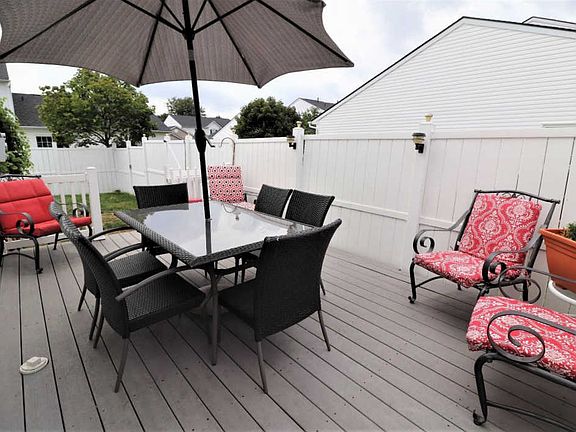 Cute end unit condo w/2 car garage & an assigned parking spot near guest parking too! Vinyl privacy fence around a large grassed area & maintenance free deck. Open floorplan w/living room & fireplace open to dining room & kitchen. New kitchen appliances including gas stove, peninsula & even a pantry. New flooring, freshly painted trim/doors & new lighting/ceiling fans throughout. Generous closets too! French doors leading to both bedrooms. Owner's suite has wall of closets, private bathroom w/step-in shower & sliding doors to the fenced yard. Front entry is wheelchair accessible along with most of this unit including owner's bedroom & bathroom. New roof 2020. Community features pool,clubhouse,gym,park & ponds. Low taxes and great location convenient to 270/70, Grove City and Hilliard.
