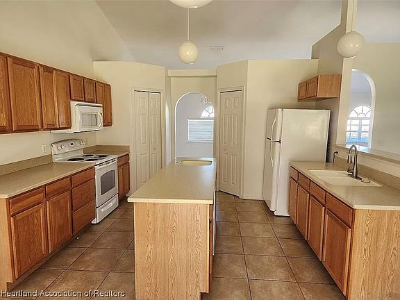 Come see this spacious home in Sun N Lake and enjoy all the amenities this beautiful golfing community has to offer. This Mediterranean style home offers a split bedroom plan, large family room, formal living room, and large tile in all the common areas. Kitchen offers solid surface counters with lots of cabinetry, white appliances, a large island for prep work and 2 pantries. Master suite has carpet and has plenty of room for a king bed, 2 nightstands and a dresser. Master bathroom has a separate tub and walk in shower. 2 guest bedrooms share a bathroom with a tub/shower combination. Family room has nice arch windows. This home has over 2000 sq ft of living space to accommodate a large family. Roof was replaced in Dec. 2022. Huge screened in patio with open views in the back of lush greenery. Community pool is just a golf cart ride away