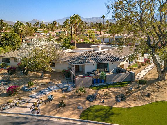 Location, Location, Location! Just south of El Paseo, you can walk there. This spectacular home is perfect for entertaining. It is on an elevated corner lot and has been completely re-done by an interior designer and is move in ready! Fabulous mountain views from every window make it naturally light and bright. Double primary suites with access to the pool. Third bedroom en suite is across from the private gym. Open kitchen is perfect for gatherings and the backyard is an entertainers delight. The backyard boasts a huge pool and spa, outdoor fireplace, citrus trees, bbq, fire pit, outdoor sitting areas, lounge chairs, and majestic mountain views. This home is a must see!