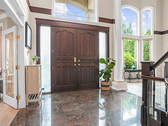 Wide flat drivewayBright foyerGrand staircaseSoaring two-storey windowGourmet kitchenGranite countertopsElegant cabinetry