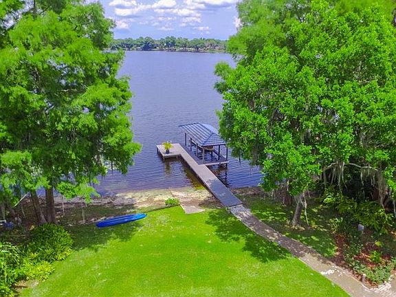 Imagine your own private lakeside retreat! This elegant yet comfortable nearly 3-acre lakefront estate with resort-like feel is situated on Little Lake Howell in Winter Springs. Generously appointed with five bedrooms plus an in-law suite. Master bedroom features gorgeous lake views, dual walk-in closets, spacious bathroom with garden tub, separate shower and a wet bar. Two bedrooms provide en-suite bathrooms. Remaining two bedrooms feature a Jack and Jill bathroom. In-law suite is spacious enough to be a studio or gameroom, features a kitchenette, private bath and separate outside entrance. Spacious kitchen and adjoining breakfast area offer built-in shelves, walk-in pantry, separate Butler's Pantry, bar seating, island and sweeping views of pool and lake. Enter through the gated entrance onto the circular drive or to the side-entrance garage. Three car garage has plenty of room for parking and storage of your favorite lake and land toys. The house is spectacular and the grounds even more so. Oversized screened-in patio is perfect for entertaining and features an in-ground pool, outdoor shower and several seating options. Private dock and boathouse offer access to spring-fed 92-acre lake perfect for skiing, boating, fishing and other favorite lake activities. Schedule your appointment today to see this one-of-a-kind property.