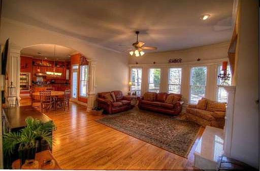 Don't miss out on this traditional home with a full basement in a popular lake, swim, tennis community. Large eat-in kitchen has granite counters and stainless steel appliances including double oven and island. Treat yourself to the master retreat with a double sided fireplace to the sitting room and a spa bath. Spacious walk-in closet. The backyard allows plenty of privacy from the oversized deck and backs up to neighborhood greenspace. Enormous family room has a gas log fireplace and wall of windows. Newer roof, hardwood floors. 06/04/14