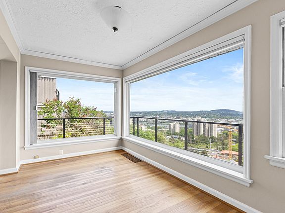 This beautiful 4 bedroom, 3.5 bath Cape Cod home has been newly renovated and sits in Portland's Southwest Hills. It features two levels of decks/balconies that offer breathtaking, expansive views of the city, Mt. Hood, and the Willamette River. Hardwood floors throughout the main floor. The living room has custom built in shelves, a fireplace with a beautiful tile and wood mantel and spectacular views via the sunroom. The light and bright kitchen has been newly renovated and has lots of cabinet space, countertop space and brand new appliances. It has a large formal dining room surrounded by windows. Upstairs you will find a newly renovated master bedroom with views, hardwood floors, custom built in cabinets and French doors that open onto the upper deck. Retreat down to the lower level where you will find a large, carpeted bonus room with, of course, a spectacular view! Just off the bonus room is a fourth bedroom that could also be used as an office space. New washer/dryer, appliances, and energy efficient windows throughout. Driveway parking included with a single car garage. Renters insurance required. Garbage and recycling service included with rent. Tenant responsible for all other utilities. No pets. Open Application Period begins Sunday, June 5th at 3:00pm. Applications will be accepted in accordance with Portland Ordinance No. 189580. Screening Criteria available upon request by phone or email. Screening Criteria Overview: Total verifiable household gross income should be at 2x the monthly rent or more. Application fee of $30.00 will apply to whomever is the financially responsible party for background check including credit, criminal, and eviction history. Accessible Dwelling Unit: No.