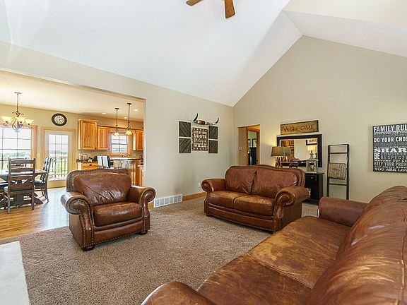Priced to sell! 5 Acres close to town! Home is only 6 years old. Cozy living room with gas fireplace and vaulted ceilings upstairs. This home has many upgrades solid hickory flooring and woodwork throughout, granite wet bar, central vac, Kohler fixtures, walk in pantry. Master bedroom and basement bedroom have walk in closets. In the lower level is an additional storm shelter fully surrounded by concrete. A gas heated Morton building, with air conditioned office and attached area for storage. Barn with fenced off area for horses. Two acres of alfalfa which produces 70+ bales per cut. Additional storage building for tack or lawn and garden tools as well.Radon test 6/2015 - passed (see report)Well and Septic inspection 6/2015 - passed (see report) You'll enjoy the peaceful setting close to town. This home won't last long! ATTENTION BUYERS: FSBOHomes offers FREE buyer support including an onsite real estate attorney that will answer questions and complete a purchase agreement. To learn more go to FSBOHomes > Buyer Support.