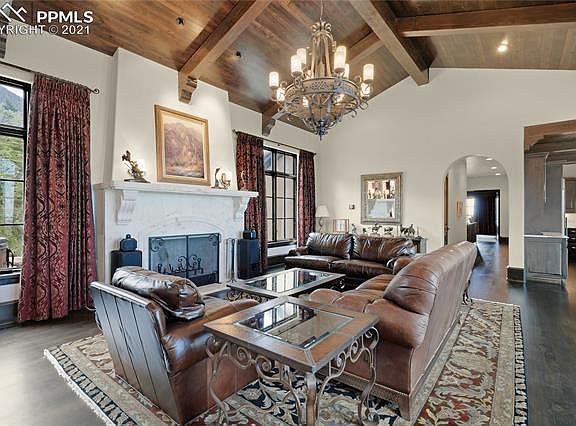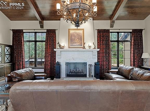 This custom built exceptional home sits on 2.57 acres in the secure, gated community of Broadmoor Resort with unsurpassed views. From the moment you arrive, the elegance and sophisticated style sets a welcoming tone. A stately design with superior quality is found inside and out. The beautiful entry gives a magnificent feeling of grandeur with spiral stair case, rich beautiful wood floors & soaring ceiling. Tongue-n-groove, beamed and coffered ceilings and custom built ins are found throughout. Entertaining will be a delight in this gourmet kitchen featuring a Wolfe 6-burner gas range, range hood, Subzero refrigerator, wine fridge, a huge center island, walk in pantry, abundance of cabinets and incredible space for large groups or an intimate setting. Walk out from the kitchen or living room to the tremendous balcony and enjoy the breathtaking views for miles. Entertaining large groups or just enjoying the tranquility from the balcony is truly a treat with an outdoor fireplace & dramatic lighting. The master suite is state of the art with custom walls & ceiling, gas fireplace with custom mantle, a walk in closet with extraordinary built ins and organizers. The luxurious master bath will exceed your expectations. A second private master suite is spacious and offers solitude. A fourth bedroom is possible in the lower level The outdoor space is all that Colorado offers where you can take it all in and experience the sights and sounds of nature ~ A private setting that is incomparable and a must see.