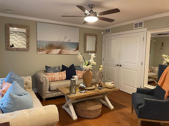 Attached garageSurrounded by green spacesHardwood floorsCarpeted bedroomsWine bar