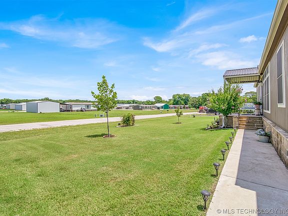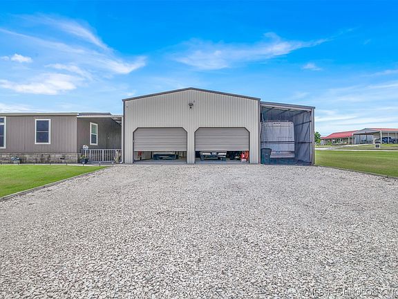 Less than 5 minutes from the water in Twin Ponds addition at Lake Texoma, say WHAT?!? This 2018 doublewide has so much to offer. The house is sitting on a full slab! It is fully tape and textured, the kitchen has a complete renovation with deep cabinets, all drawers pull out, & they all have self shutting doors. In the laundry room you will find a hidden pantry that will hold all your lake snack no doubt! Home comes with washer & dryer, a set of bunkbeds, a freezer, & the refrigerator. AC Unit was replaced just a little over a year ago. Off the front of the house there is a covered porch area. The back has a large covered patio, with full coverage over to the 2 car garage. Garage is a 30X48 & 14ft ceiling with a 12X12 mezzanine for storage. When you enter and leave the garage the lights come on and go off automatically. Garage does have full electric and water. There is a sink already in the garage. Off the garage you will find an attached RV/Boat bay. This bay is 48X12 with a gravel floor, storage shelving in the back, & a pull down screen in the front. RV/Boat bay has a 50amp plug & a welding plug. Come check out all the updates this home has to offer just minutes from the water and boat ramp at Buncombe Creek, I promise you will enjoy it!