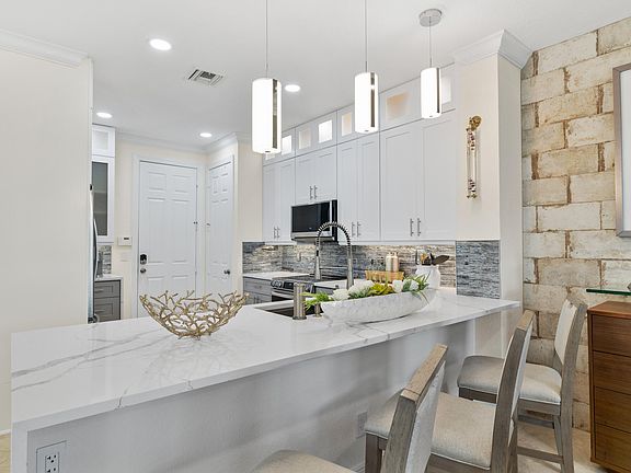 ABSOLUTELY STUNNING 3/2 with loft. in the highly desired Paloma community. Meticulously remodeled with no expenses spared. Brand new kitchen, December, 2023 with soft-close oversized cabinets, quartz waterfall countertops and LG high-end appliances. All bathrooms are remodeled, brand new luxury vinyl floors upstairs, ceramic tile downstairs. New water heater and LG washer and dryer. New plantation shutters on all windows and LED high hat lighting throughout. Impact windows and impact garage door. Large fenced in backyard with upgraded landscaping and LED lighting, great for pets. Golf putting green & chipping area. Garage floor is coated with polyaspartic finish and features overhead storage racks. Too many extras to list.Garage fridge & Freezer & shelving do not convey.