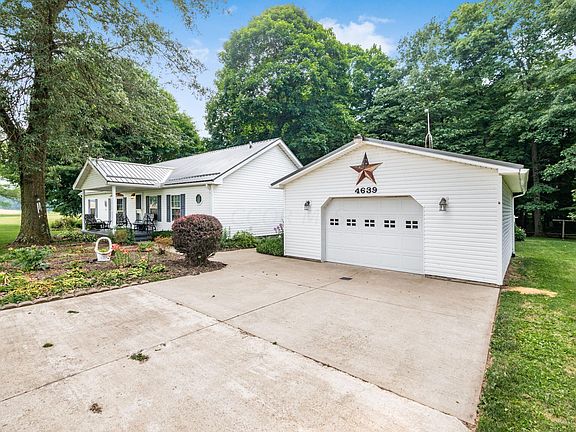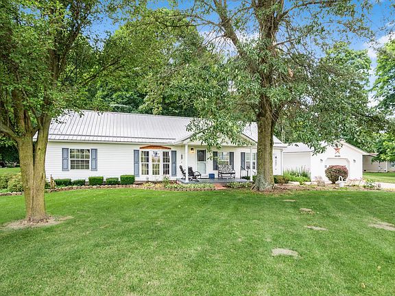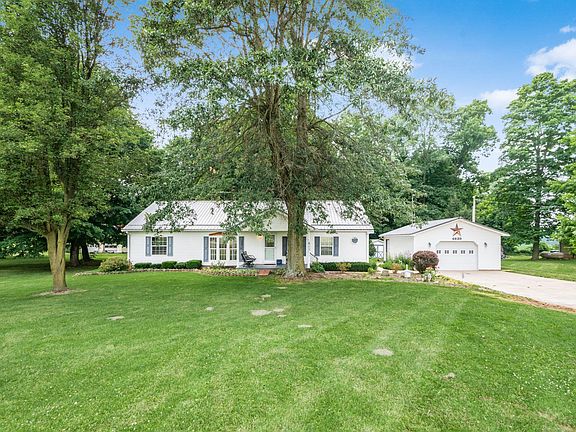 Scenic views of a peaceful country setting make this well-maintained ranch-style home the perfect forever home. Enjoy a large family and dining room with vaulted ceilings that flows into an island kitchen with newer kitchen counter, floor, sink and faucet (2020), plenty of cabinet space, newer stainless appliances (2022), pantry, casual dining space and connected utility space. Large primary bedrooms with two closets, and en-suite bath with dual vanity, shower, and garden tub! Two additional spacious bedrooms and full bathroom. Large deck opens to a private wooded yard with two out buildings and one car garage!