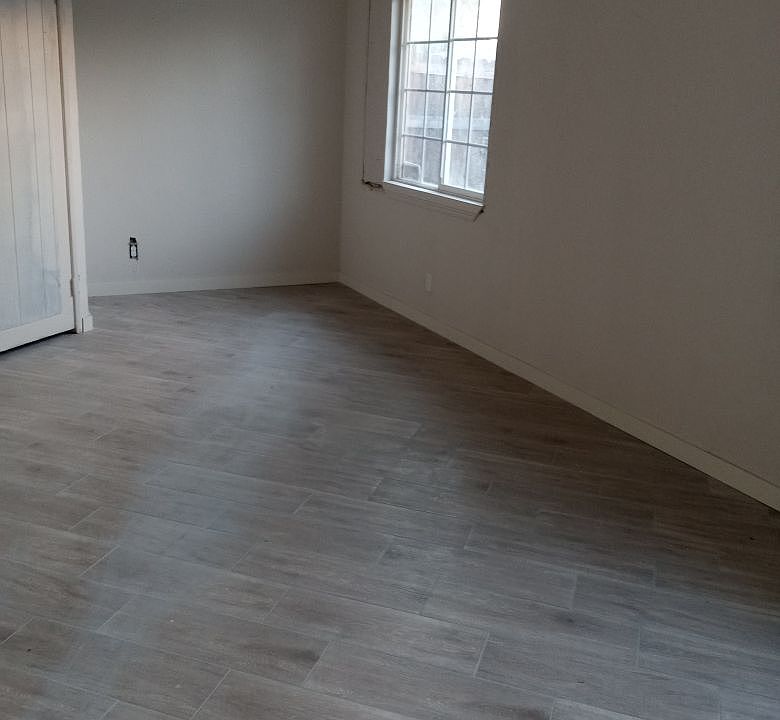 Freshly painted and all new tile flooring throughout. New windows. Large yard that is gated. This is a duplex and is the back unit. No garage. driveway parking. 3 bedrooms and 1 bath. Tenants are responsible for electricity and water and owner pays for gas and trash.