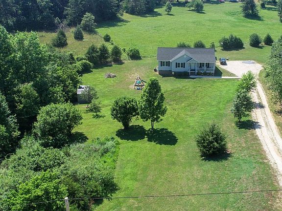 Wow- what a find! This newer home sits on a flat 2.4 acres. Upon entering the property the first thing that stands out is privacy. The driveway has ample amount of parking spaces. The inside features all main level living, open floor plan, hardwood floors, tile baths, ample amount of cabinet space and a master bedroom with his/her closets and full bathroom. Outside enjoy a nice family grill out on the private back deck or coffee overlooking the beautiful outdoor space on the covered front porch. Two newer sheds offering additional storage space convey with the purchase.
