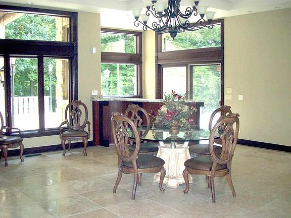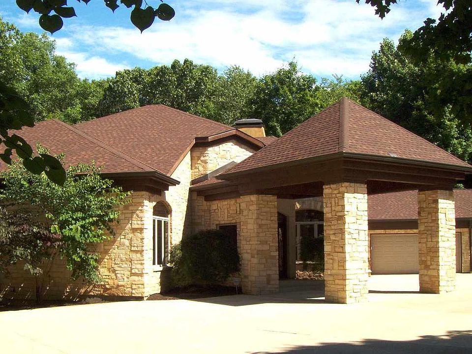 Set on 1+ wooded acres among the fine homes of Scharerdon Woods, this builder-owned 6635-SF, 4-BR, 4.5- BA home w/Wisconsin Chopped Stone exterior blends exceptional finishing & custom design to create a unique showplace. From the circular drive w/lighted posts to the drive-through portico & stunning Wenge Wood door, the invitation to quality is evident. A Durango Limestone foyer/gathering room w/wet bar is but one of the grand entertaining spaces. Three doors access a patio w/lighted steps, custom post lights, gas (or wood) firepit, built-in grill & outdoor refrigerator & wooded views The 1st-floor luxury master suite has one of 3 full masonry gas-log fireplaces & the custom lighting that is present throughout, plus multi-head stone shower & Vitabath tub w/air & water jets. The cherry kitchen has granite counters, Viking gas oven/range, 2-drawer dishwasher, 3-door refrigerator, wine chiller & dramatic skylight. Delightful living & entertaining spaces continue in the lower level, w/fully-equipped theatre room (Xbox &Wii included) w/surround sound & 6 power recliners, recreation area w/game tables & fireplace & second kitchen. Special features include a 3-car heated /insulated garage w/high-speed lift doors, 3-zoned heating/cooling, high-efficiency water heaters (125 gal), new 30-year shingles, 6"exterior walls w/blown fiberglass insulation, copper gutters/downspouts/valleys & masonry outbuilding w/overhead door for mower/storage.