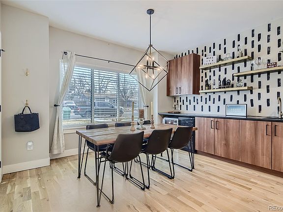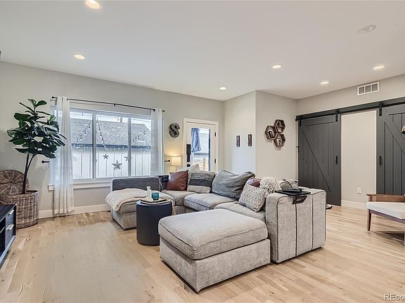 Modern farmhouse in South Englewood! This 4 bed / 3.5 bath attached home features a modern kitchen with slab door style cabinetry, a huge eat-in waterfall island, Denali white quartz countertops, a large composite sink, modern pendant lighting & tile backsplash. Main floor features solid oak hardwood floors. Andersen windows. Custom horizontal iron railings. Large master with vaulted ceilings, a large walk-in closet, & an ensuite bath with double vanity. Laundry on 2nd floor with the 3 bedrooms. Central A/C. High efficiency furnace & water heater. Floating powder bath vanity with marble/brass accent mirror. LED lighting throughout the entire home for energy efficiency! Custom details & finishes everywhere, such as 3-shelf soap niches in the master showers, designer tile, & modern fixtures. The basement was recently finished and includes a full wet bar, sink, filtered water bottle filler and dishwasher. It also includes a media room with 3 large TV’s, wine cellar with backlit lighting, full bathroom with a steam shower, and a home gym that could be converted to a bedroom with carpet installation. Fenced yard with covered patio & front & back yard sprinkler system. The concrete patio was extended and includes an outdoor entertainment area with a high top bar and TV! 2 car detached garage. Garage floor has epoxy and shelfs for storage. No HOA. 5 minutes to downtown Littleton and downtown Englewood, walkable shops and restaurants on Broadway, 20 minutes to downtown Denver.