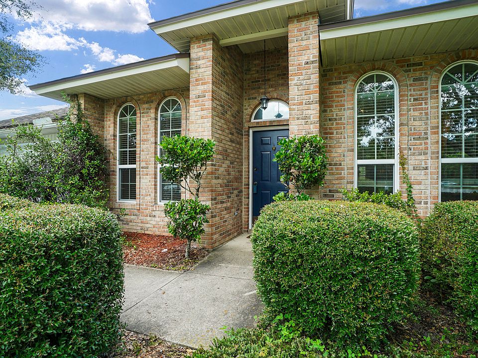 NEW PAINT & FLOORS! All brick, Mandarin home in quaint community of Derris Creek! Plenty of room to spread out - this 4BR/2BA house in laid out perfectly for entertaining. Two rooms up front can be used as formal living and formal dining -- or perfect offices and school rooms if you are working/learning from home! Triple split floor plan with 2 bedrooms plus full bath on one side of kitchen; additional guest room on other side of kitchen, and master on other side of the home. Master bedroom features two walk-in closets, large ensuite bath with garden tub and separate shower. Fireplace in family room, eat in kitchen, sliding doors to the oversized screened lanai. Enjoy the views of a nicely landscaped backyard. Roof replaced within past 10 years. Security system & irrigation