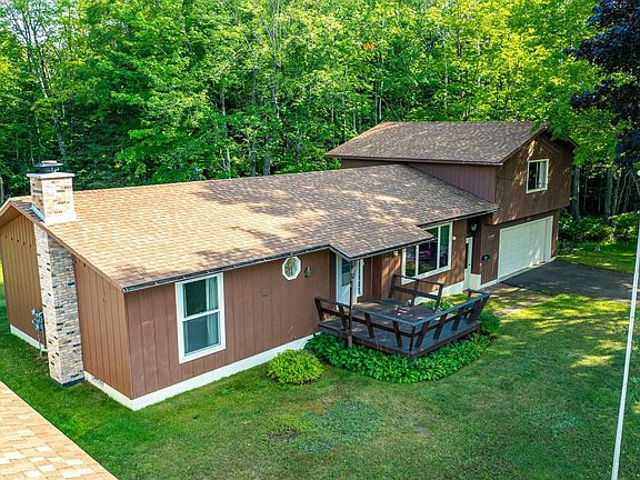 PORTAGE TOWNSHIP – This two-bedroom, two-bathroom ranch-style residence is situated on approximately 12.12+/- acres in a desirable township location just outside the City of Houghton and roughly three miles from Michigan Technological University. The main floor features two bedrooms, a full bathroom, a comfortable living area with an electric fireplace, a dining area, a well-appointed kitchen, and a finished porch providing additional living space. The predominantly finished lower level offers a family room with a bar/recreation area and a second electric fireplace. The laundry facilities are located within the lower-level three-quarter bathroom. The grounds are parklike, featuring a seasonal creek, mature wooded areas, and a cleared backyard. This property enjoys convenient proximity to the City of Houghton, waterfront trails, downtown amenities, Walmart, and Michigan Technological University. Additional highlights include a front deck and an attached two-car garage with a loft or bonus room above. Road frontage and acreage figures are estimates based on tax records and available mapping applications. Please note, the lower-level bathroom/laundry lacks a radiator but remains reasonably warm year-round. Both the house and garage received new shingles approximately two years ago, and a hot water baseboard heating system was installed about four years ago. Property was surveyed in 11/2025 and a copy is available for review. Property is flagged. NOTICE: All information believed accurate but not warranted. Buyer recommended to inspect & verify all aspects of the property & bears all risks for any inaccuracies including but not limited to estimated acreage, lot location/size, square footage, utilities (availability & costs associated). Real estate taxes are subject to change (possibly significant) & municipality reassessment after sale. Buyer should NOT assume that buyer’s tax bills will be similar to the seller’s current tax bills. Parent parcel included additional land not included in this listing. Taxes are not zero. Audio/video recording devices may be present on property and entering the property shall be considered consent to be recorded. OFFERS: 72 hours response time requested on offers. Seller, at seller's sole discretion, with or without notice, reserves the right to set and/or modify offer submission & response deadlines.