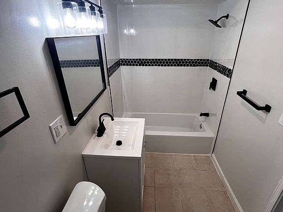 Modern sleek bathroomModern light fixturesStainless steel appliancesGranite kitchen topExtra storage spaceNewly renovated kitchenNew flooring