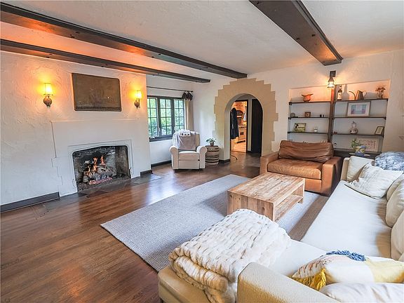 It just took a Tudor to make your dreams come true. Driving through the quiet, sidewalk, treelined streets adorned on both sides by 1 unique luxury home after another. You reach the dead end, gaze to your right & there it is....your new 1 of a kind castle home! They were not lying either, jungle gym, teepee, sandbox, soccer net & I wouldn't doubt a pool can be installed. When you visit, pull up to the side porch as this will be your main in/out once you move in. You'll love that covered porch, the wooden deck attached & the original flagstone area. Once inside you're greeted by REAL hardwood floors, a gas fireplace in the living room. On to the kitchen & you can't believe it, a brick oven surround! The finished basement with gym, sauna & partial bath is a great winter gathering place!